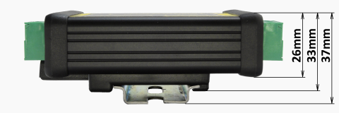 - Hliníková krabička s montážou na 35mm DIN lištu.