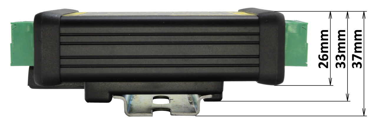 - Hliníková krabička s montážou na 35mm DIN lištu.