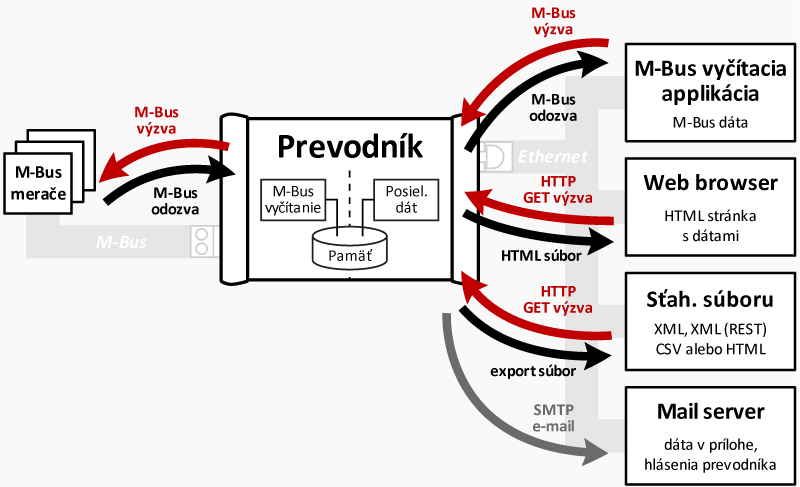 prenos M-Bus správ pomocou Ethernetových protokolov TCP alebo UDP.
