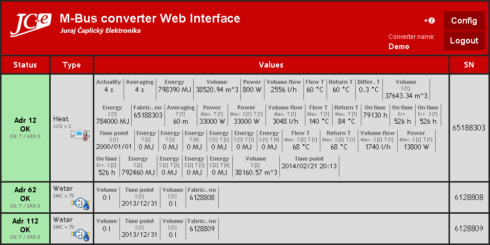 Samostatne komunikuje s M-Bus meračmi, spracováva